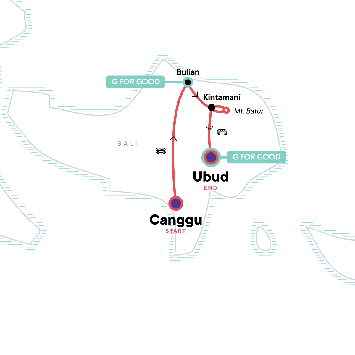 Learn to surf on the iconic beaches of Canggu, Stay with local families in Bulian Village and help make traditional Balinese offerings, Pedal through rice fields and cool off in secret waterfalls, Camp in Kintamani and summit Mount Batur for an unforgettable sunrise, Connect with Bali’s culture over home-cooked meals and village life
