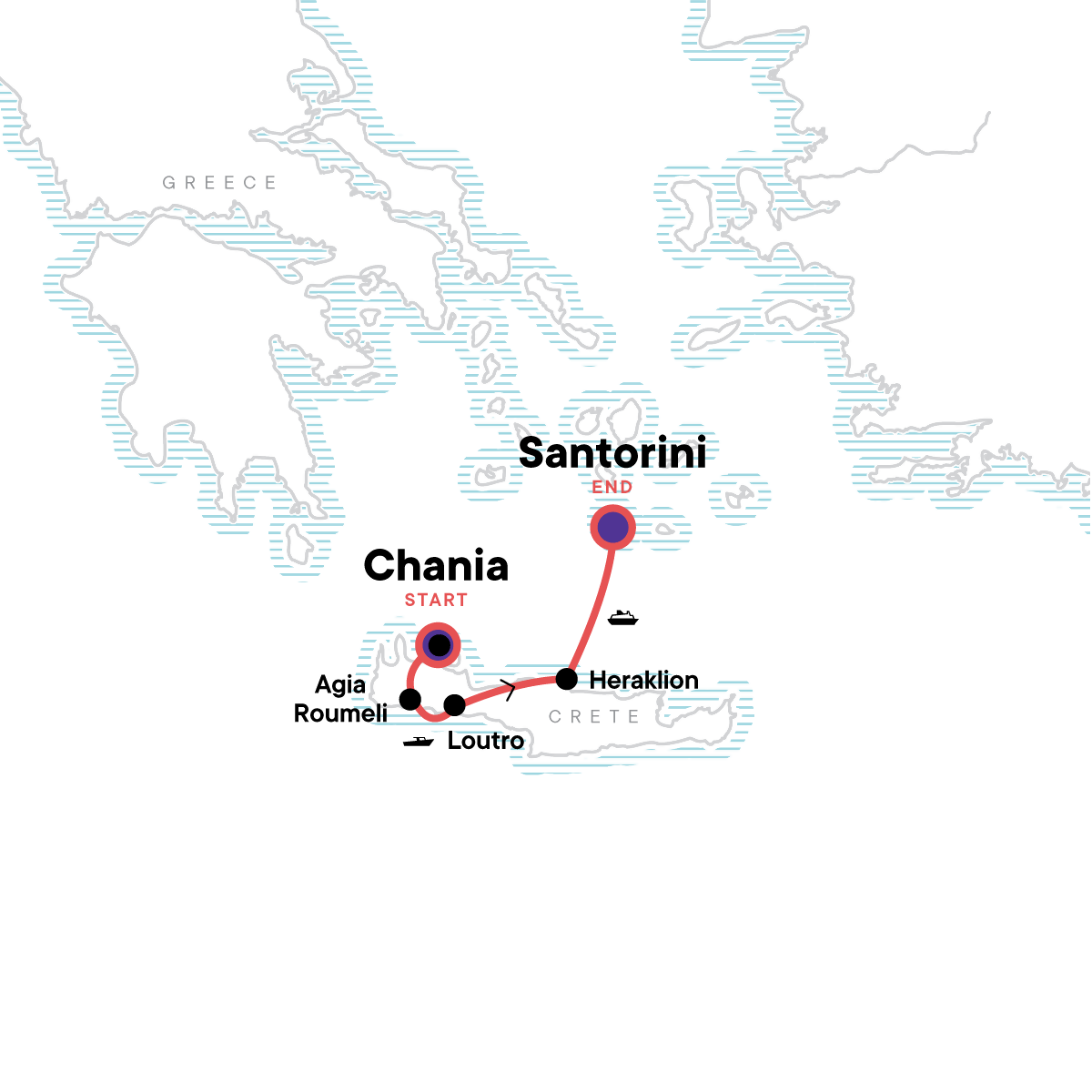 Your Welcome Moment: Meet Your CEO and Group. Samariá Gorge hike. Beach time at Agia Roumeli and Loutro. Palace of Knossos visit. Orientaion walk of Fira. Caldera walk from Fira to Oia on Santorini. All transport between destinations and to/from included activities.