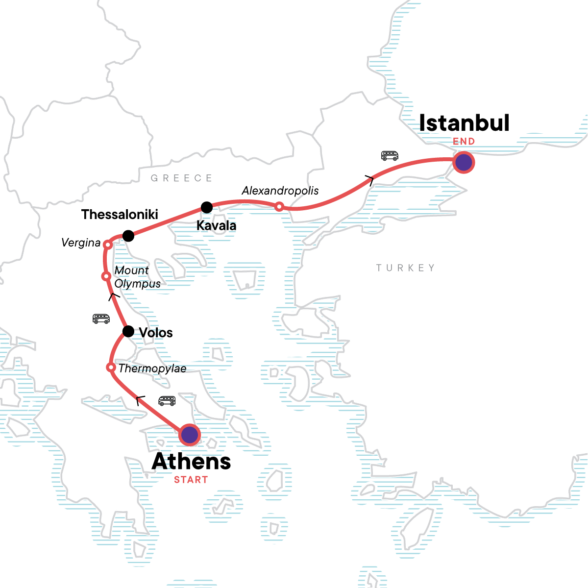 History, mythology, cobblestone streets, golden beaches, and the legendary Mt. Olympus — what more could you ask for? Journey from west to east on this epic seven-day adventure from Athens to Istanbul. Walk in the footsteps of warriors at the Thermopylae battlefield, the inspiration for the movie 300, and dive into the myths and legends that make Greece so captivating over a spread of delicious local meze. Wander through the rugged beauty of Mt. Olympus National Park, standing in the shadow of the gods, before crossing into Turkey and arriving in Istanbul — a city where East meets West in a vibrant swirl of culture, history, and incredible food. One unforgettable week, two incredible countries, and memories to last a lifetime.