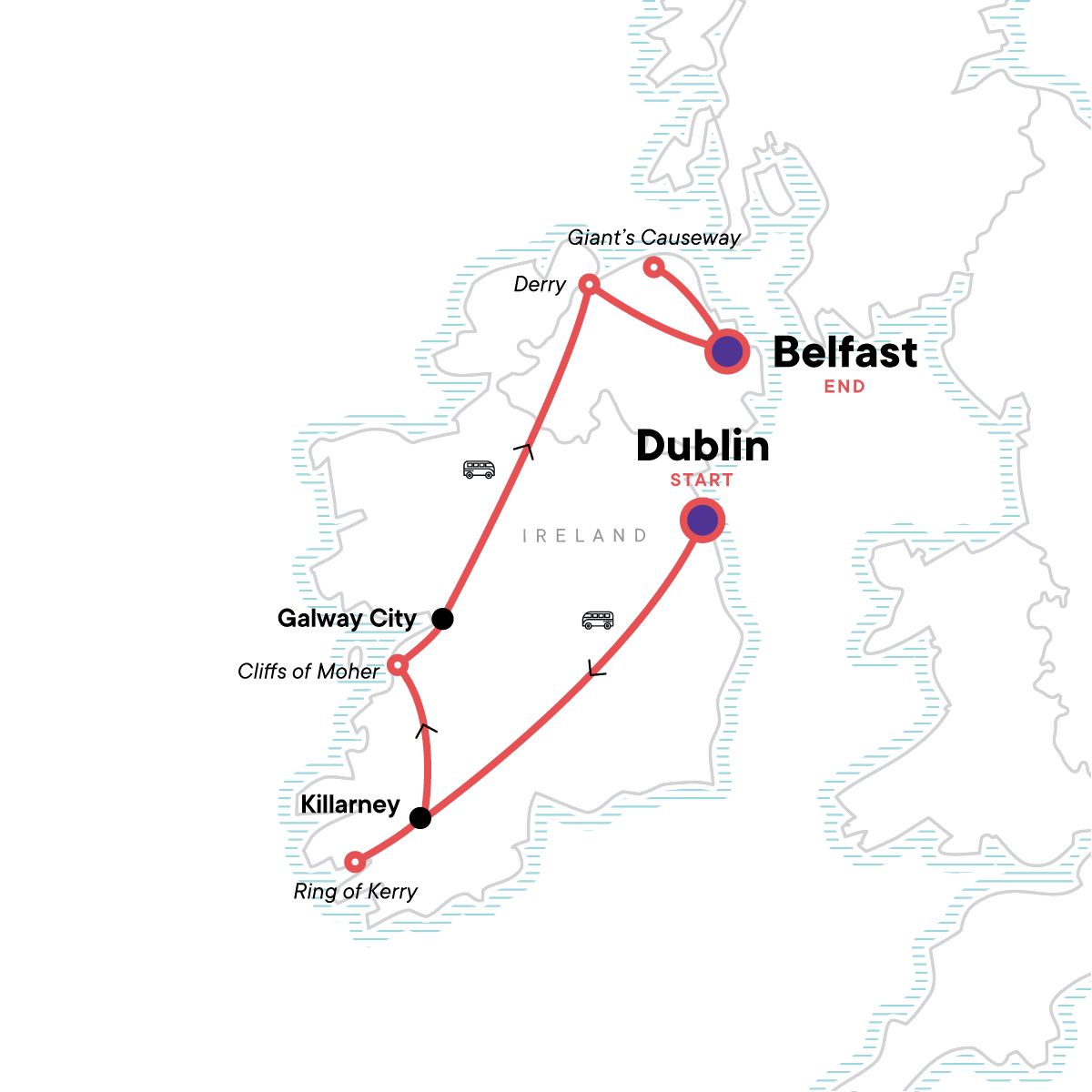 Depart at any time. If you wish to extend your stay in Belfast, consider booking post-tour accommodation with us. Please speak to a G Adventures representative about booking accommodations in Belfast after your tour ends.