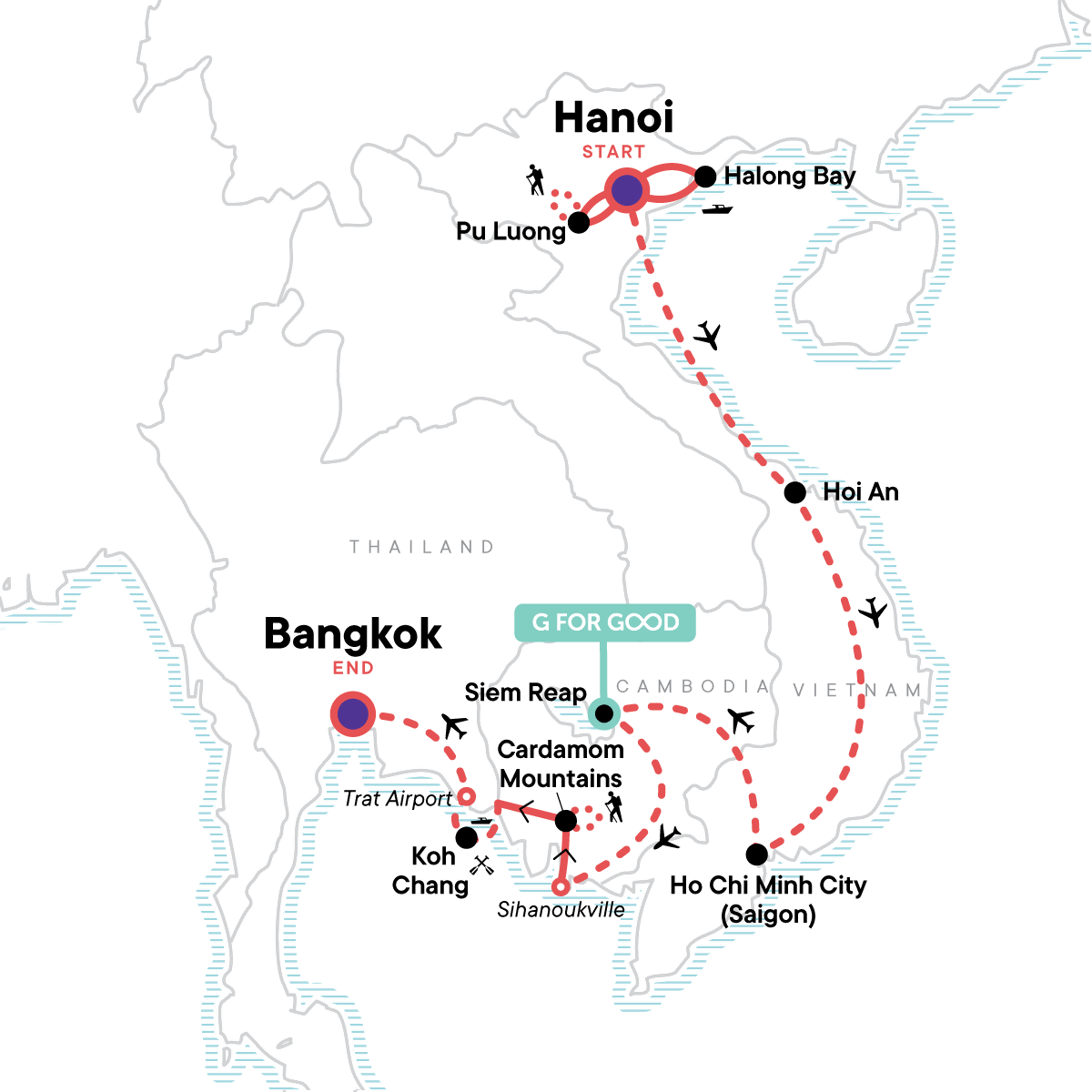 Today your adventure comes to an end. We hope you loved visiting Southeast Asia as much as we do! We promise you won't need a vacation after your vacation, but we guarantee you'll be ready for another adventure with G. Depart at any time.