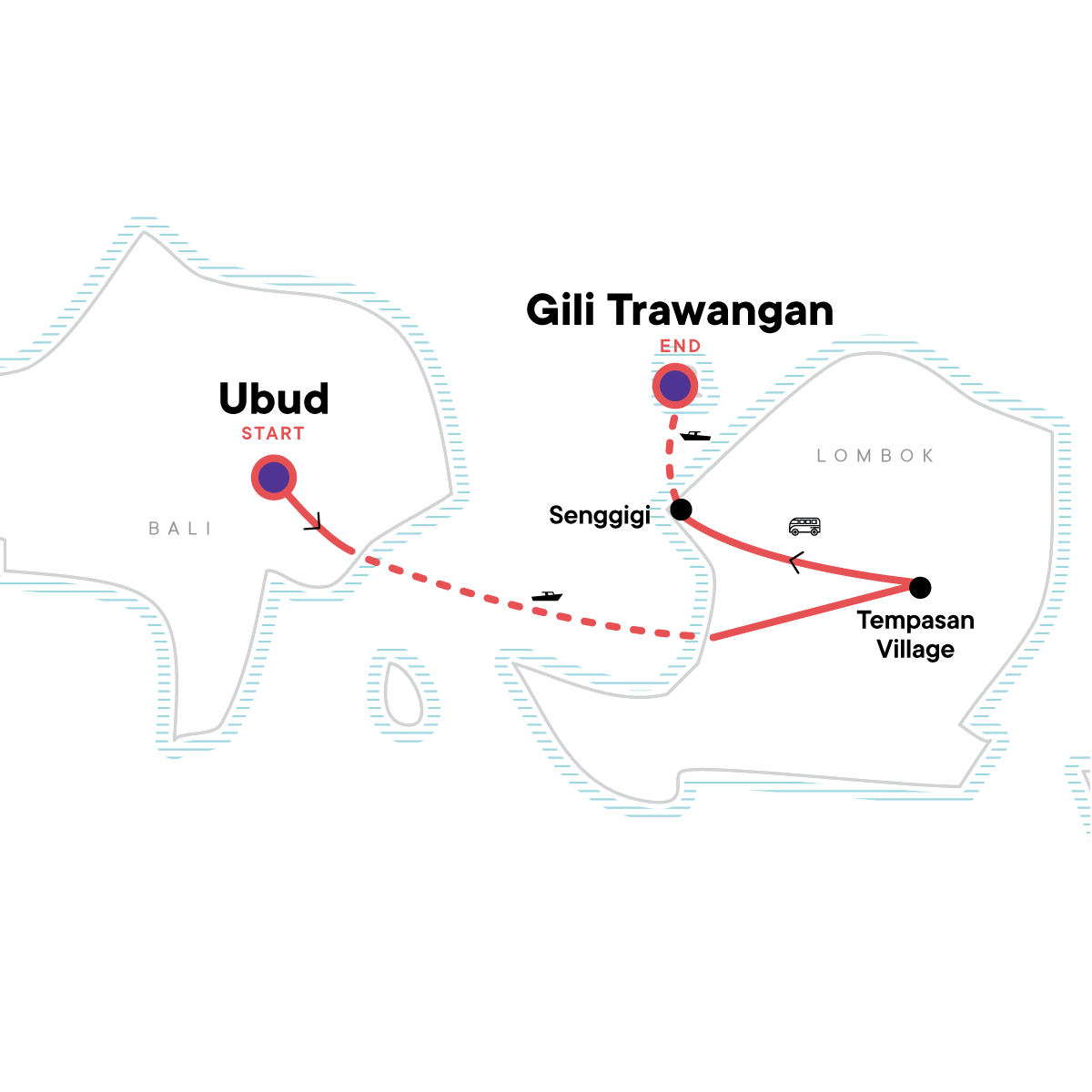 Your Big Night Out Moment: in Gili Trawangan, Gili Trawangan. Free time to explore Ubud. Rice terrace & village walk. Pringgasela weaving village visit. Traditional loom demonstration. Afternoon tea at Aranka homestay. Bonjeruk Village immersion experience. Gili Trawangan 3-Island Snorkeling Tour. All transport between destinations and to/from included activities.